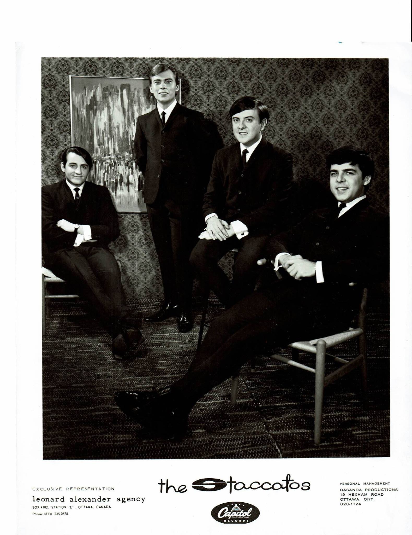 The Staccatos formed in Ottawa, Ontario in 1963 around vocalist and local disc jockey Dean Hagopian, guitarist Vern Craig, bassist Brian Rading, and drummer/vocalist Rick Bell (Rick Belanger). The band first appeared on record with an early single on Allied Records, establishing themselves within Ottawa’s developing mid-1960s beat and pop-rock scene.