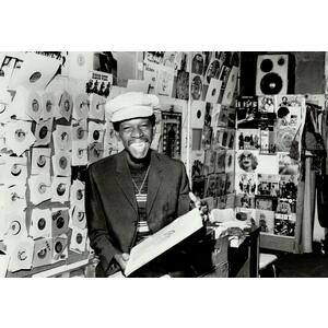 Among the Market’s jumble of butchers, cheese shops and fruit and vegetable stalls, Roots Records stood out as something different. Over the door was a sketch of the Ethiopian emperor and Rastafarian god Haile Selassie. The front window featured lettering in red, gold and green paint, while on the sidewalk sat Stranger’s rickety sound system, held together with bailing wire. Stranger would warmly greet visitors, flashing his gold-capped grin, and the store quickly became a popular downtown hub for the city’s Caribbean community.