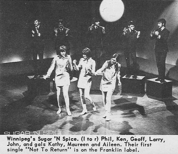 In 1967, with the addition of Geoff Marin and John MacInnes from The Mongrels, the band rebranded as Sugar & Spice and signed with Winnipeg's independent Franklin Records. Their debut single, "Not to Return," written by Randy Bachman of The Guess Who, received significant airplay in Winnipeg and modest attention elsewhere. This success led to performances across the Canadian prairies and Ontario, including opening acts for prominent artists like Sonny & Cher and The Who. ​