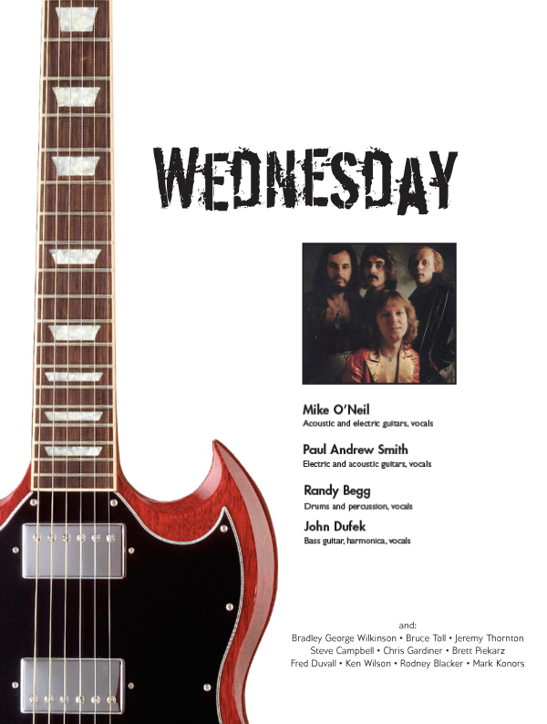 A chance meeting in Oshawa in July,1967 of Paul Andrew Smith and Randy Begg set the seed that became Wednesday. This was Paul’s second day in Canada, having spent the previous two years as a member of The Trolls, a British-based band along with Vic Collins (Kursaal Flyers, Ugly Guys), Steve Prout and Michael Langridge.