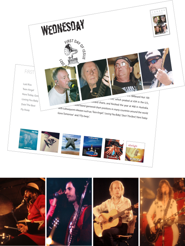 Wednesday continued to work the Ontario circuit honing their live show and building a loyal following. In late 1972 they recorded the Wayne Cochran song ‘Last Kiss’ at Toronto’s Manta Sound Studios, engineered by Lee DeCarlo (Lennon’s ‘Double Fantasy’, Aerosmith). The single was soon picked up by local radio stations. CFTR-AM played it immediately and indefinitely. Influential 1050 CHUM-AM jumped on the track and the song went to No.2, giving way to an avalanche of Canadian radio support. The song reached the number one position on Billboard’s Canadian chart and stayed there for six weeks earning them an ‘RPM Maple Leaf Award’ (the precurser of the JUNO), a Gold Record in 1973, and were nominated for several Junos.