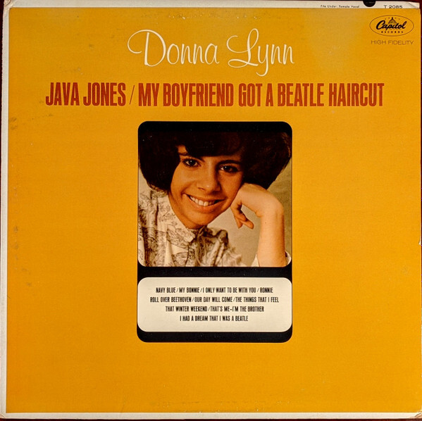 Born around 1949–50, Donna Lynn was a teenage recording artist who briefly caught the spotlight during the peak of Beatlemania in the early 1960s. At just 14 years old, she released her debut album Java Jones & My Boyfriend Got a Beatle Haircut in 1964 on Capitol Records—a collection of pop tunes and Beatle-inspired novelties reflecting the cultural moment.
