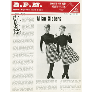 Snider quickly signed them to his new ACT label, and later to the Red Leaf consortium, which he co-founded with Stan Klees and Duff Roman. In October 1964 he took the Allan Sisters and fellow ACT artist Pat Hervey to London, England, where they cut a dozen songs in a whirlwind three-hour session—making them among the first Canadian pop singers to record overseas. From these sessions came “Mr. Special” / “Wherever You Are,” released in late 1964 and warmly received across Canada. More singles followed on Red Leaf, including “Remember the Face” / “In My Diary” and “Your Kind of Love” / “Lonely World.”