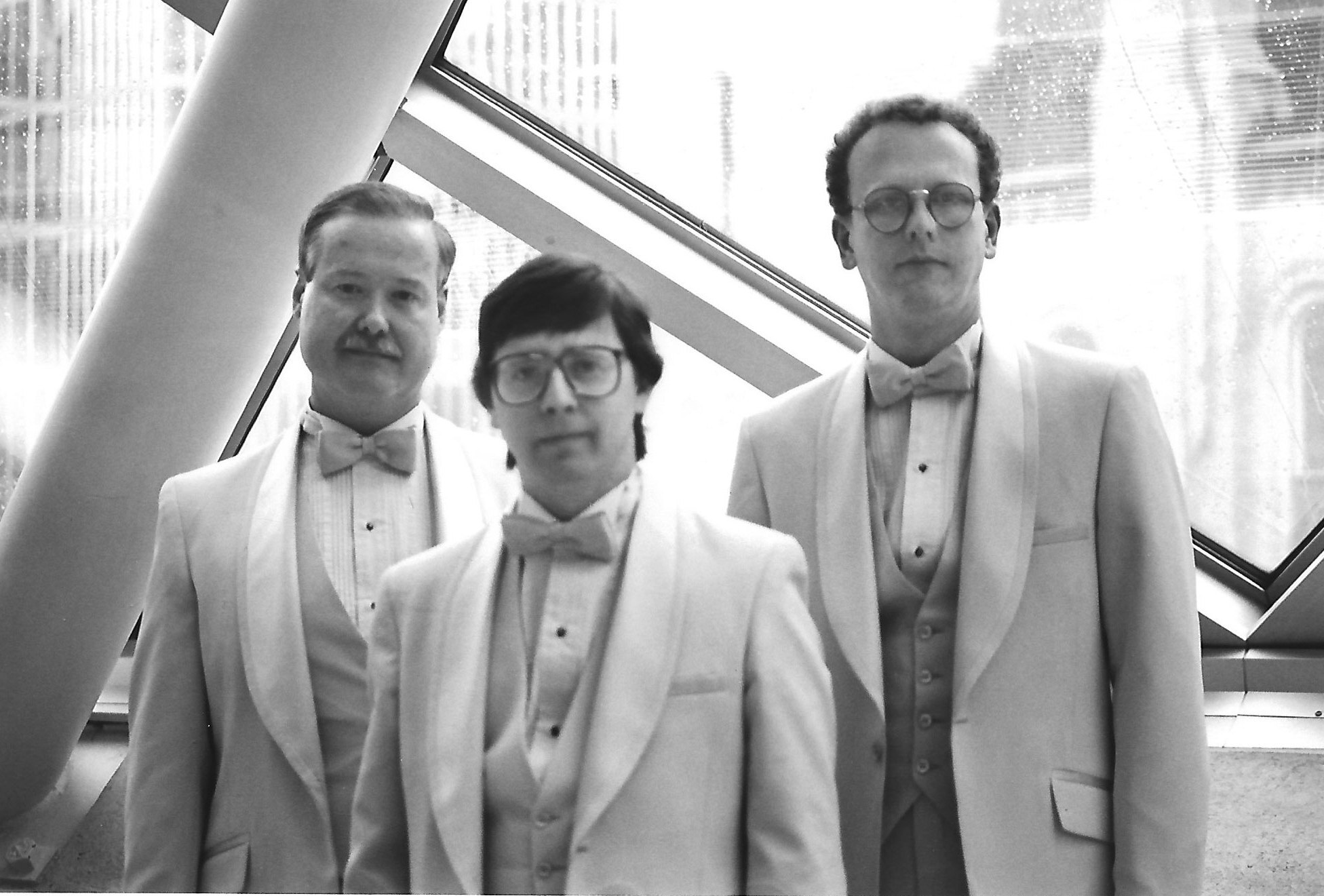 The trio (Lake, Jaeger, Montgomery), movin’ uptown to Roy Thompson Hall. We were the synth section in Steve Gellman’s Universe Symphony, with Andrew Davis and the Toronto Symphony, 1986