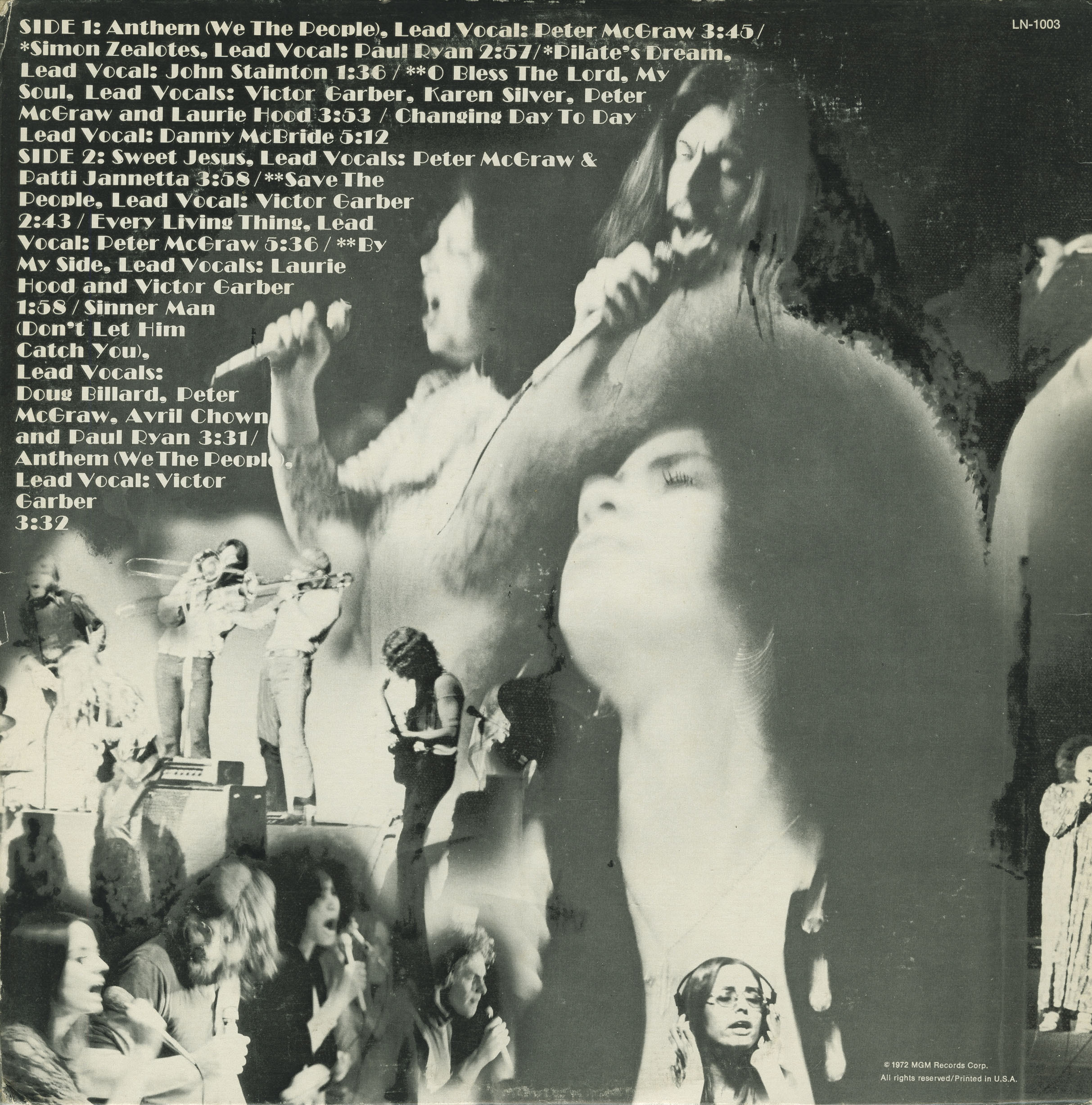 Their self-titled album, released in 1972 on Lion Records, captured the spirit of the era with a mix of original songs and covers of contemporary rock musicals such as Jesus Christ Superstar and Godspell. The ensemble was produced by Peter Mann and Perry Botkin Jr., with arrangements by Steve Brundage and engineering by Ed Greene and Steve Smith, recorded at MGM Recording Studios in Hollywood, California.