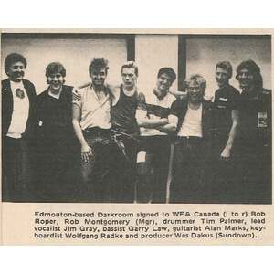In the early 1980’s frontman Jim Gray and guitarist Alan Marks were playing in the Edmonton's local club scene, making a living playing in cover bands six nights a week. Finding a common thread in their musical taste, they left the bands they were in and formed Darkroom. With the additions of Wolf Radke on guitars and keyboards, bassist Garry Law and Tim Palmar on drums, they played the local area circuit, playing covers, and starting to introduce their own songs to their growing following.