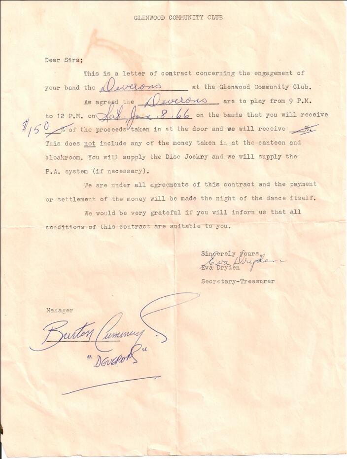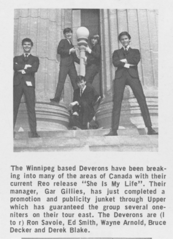 The lineup that was really to be the Deverons finally cemented itself early in 1964. It was Ronn Savoie on drums, Edd Smith on bass, Derek Blake on lead guitar, Bruce Decker on rhythym guitar, and yours truly on piano and vocals.