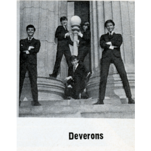 The name Deverons is a direct rip-off from an American group called the Devrons. I know nothing of this group, except that they had one minor, regional hit with a guitar instrumental called Brand X. I have checked Joel Whitburn's books on Billboard's charts, and according to him, this Brand X record never charted for even one week at a high number on Billboard's top 100. Derek had heard and learned the instrumental and I suppose he became enamoured with the name...probably kept saying it over and over in his head like a mantra, falling prey to its sonic spell...Derek had subtly added an extra E to the spelling, and this band from St. Joh'n High School came to be known as the DEVERONS. This was all during 1962.