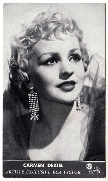 Originaire de Sherbrooke, Carmen Déziel commence très jeune à chanter, soit vers l'âge de 12 ans au couvent, où on lui confie le rôle-titre dans une comédie musicale. À l'âge de 14 ans, elle remporte la première place lors d'un concours de jeunes talents à CHLT-Radio. Subséquemment, elle participera à une émission radiophonique hebdomadaire à CHLT pendant un an. Carmen fait ensuite des enregistrements pour la compagnie APEX : "Rien que vous" (Only You) / "Les souvenirs sont comme ça", entre autres. En 1956, ses disques tournant beaucoup sur les stations CKVL et CKAC, Jean Grimaldi, le grand-papa des artistes de l'époque, l'entend et insiste pour qu'elle déménage à Montréal en vue d'y faire carrière. Son contrat est donc transféré à la compagnie RCA Victor, plus importante, dont elle deviendra artiste exclusive. Son enregistrement de "Bambino", connaît un immense succès et lance sa carrière qui durera plusieurs années.