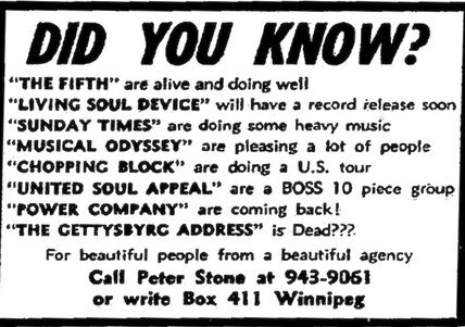 The band relocated to Winnipeg in 1966 and took up residence in Richard's house in East Kildonan, rehearsing there during the week for what had become a jam-packed schedule of bookings arranged by their manager, Peter Stone (Peter Slywka).
