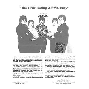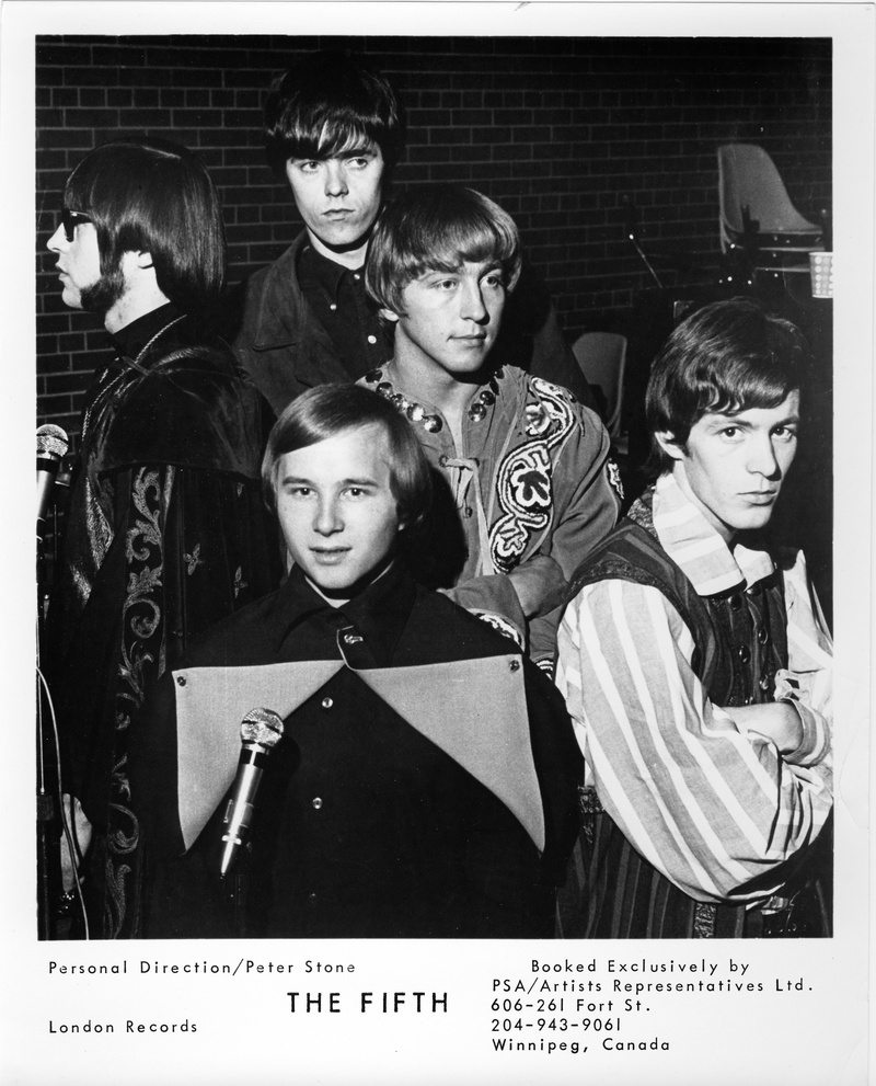 The forerunner of The Fifth was a group called The Saints. All still in high school, they rehearsed in the old Gimli train station and played Interlake regional dances. Starting off as a four-piece in 1964, the original members were: