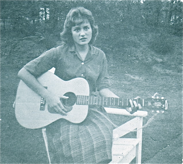 As a teen, through her association with Ronnie Hawkins and the great Robbie Robertson, she became smitten with guitar, and taught herself to play chords, and strum along while she sang. During one of the matinees at the Concord Tavern, Robbie allowed Debbie to play a few chords on his famous Stratocaster, and he explained to her that he used a banjo string for his high E string  because it stretched a lot easier. A high moment in her life!