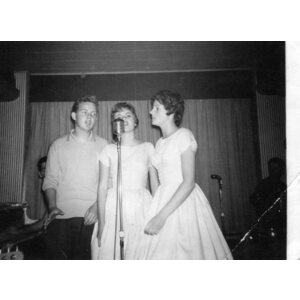 Debbie Sings with McMaster jazz ensemble in 1962, pictured with Moe Spence on Guitar, John Reynolds on bass, and Bill Lang, Drums.