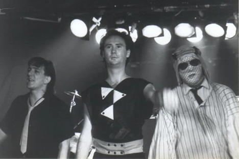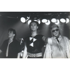 The band's original 1976 lineup and presentation was very unusual; it consisted of just 2 people: Cameron Hawkins, appearing as a typical rock star at the front of the stage, playing synthesizer, occasional bass guitar, and lead vocals; and Nash the Slash, a mysterious figure in dark clothes lurking in the shadows at the back of the stage, playing electric violin, electric mandolin, backing vocals, and operating a drum machine. Aside from Cameron's bass, the group did not use guitars. The duo first met each other while they were jamming with a band called Clear. The group first recorded in July 1976. A few months later, TVOntario recorded an in-studio performance for the Night Music Concert TV show, first broadcast on November 3. It is very likely this was also the date of recording. The half-hour show, shown with no commercial breaks, presented the band playing three long pieces: "Phasors on Stun", "One O'Clock Tomorrow", and "Black Noise". It also included a nonsensical biography of the group resembling free-association poetry, recited by David Pritchard (electronic musician, record producer and CHUM-FM DJ, 1960s-1970s), accompanied by electronic background music and a collage of photos and artwork by Paul Till, appearing between the first and second songs. Neither this music, nor any performances by the original 2-person lineup, were released on an album until 2001.