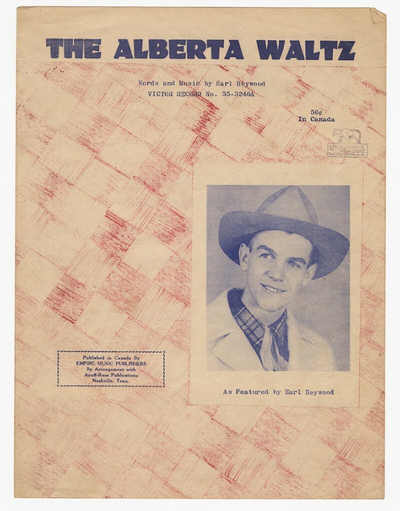 Heywood began recording for RCA Victor in 1949, completing with his Serenade Ranch Gang eighteen 78s (some reissued on the LP Earl Heywood Sings, RCA Camden CAL-2249), including the hits 'Alberta Waltz' and 'Tears of St Anne.' He also recorded LPs for Rodeo and Banff with the Heywood Family (his wife, Martha, and their children Patricia and Grant) and made three albums for Dominion, including the popular Tales of the Donnelly Feud (1969, LPS-21013), for which a corresponding song folio was published by Canadian Music Sales in 1971. (Other folios were published by the same company in 1948 and 1951.) Among his more than 300 songs 'Moonlight on the Manitoulin Island' was a hit for a US group, The Moms and Dads, and the melodies of his 'Alberta Waltz' and 'Algonquin Waltz' were recorded by the fiddler Eleanor Townsend. Heywood's recordings also achieved popularity in Australia.