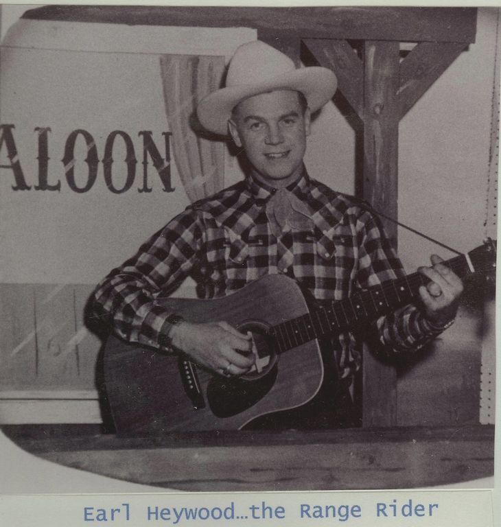 Earl (Carlyle) Heywood. Country singer-songwriter, guitarist, broadcaster, b near Exeter, north of London, Ont, 12 Mar 1917, d Brussels, Ont, 17 Sep 2006. Known as 'Canada's No. 1 Cowboy Singer,' (or 'No. 1 Singing Cowboy'), and one of the leading country musicians in Canadian radio, Heywood learned guitar at age 10. He began his career playing tenor euphonium with the Exeter Brass Band. He served in the army during World War II, and in 1941 became well known for singing his own 'Living in the Army' as the theme of a radio show on CFCO, Chatham, Ont. He joined CKNX, Wingham, Ont, in 1942 and remained with that station (and its later TV and FM affiliates) as a singer and announcer for more than 40 years, performing for almost 20 years on the weekly CKNX Barn Dance. He was the host for 'Serenade Ranch' from 1946-53. He appeared during the 1950s on such CKNX TV programs as 'The Range Riders Show,' 'Rocking Horse Ranch,' and 'Western Roundup' and sang for many years on 'Circle 8 Ranch.' Heywood performed on CBC Radio and television during the 1950s and 1960s, including playing the guitar and singing on 'Holiday Ranch'. Heywood made several appearances in the early 1950s in the US. In 1954 RCA Victor declared a National Earl Heywood Week.