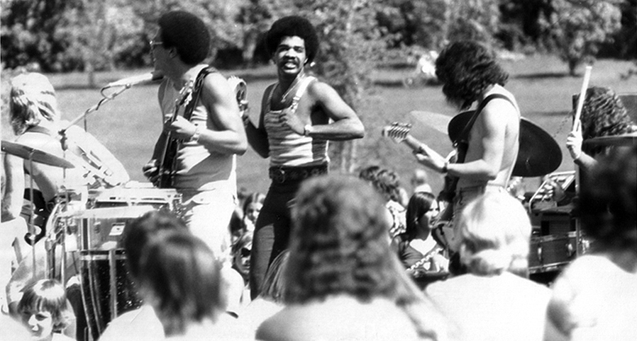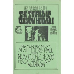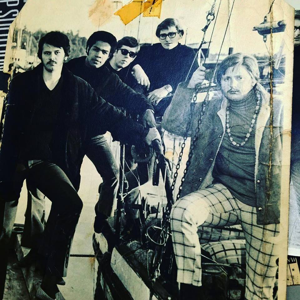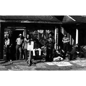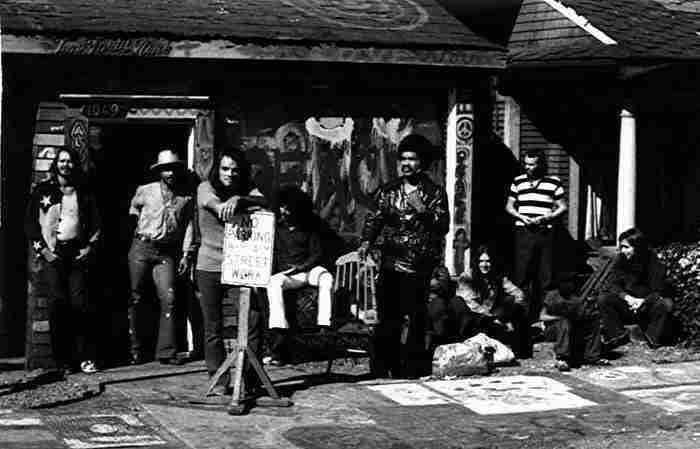 "Trials of Jayson Hoover at the Free Store 1049 West 7th Avenue, Vancouver - 1971 Jim Harmata, Donny Gerrard, Al Foreman, Lou Hoover, Jayson Hoover, roadie KM seated, unknown Free Store freak in sailor garb and the late Lorne (Flag) McGee.