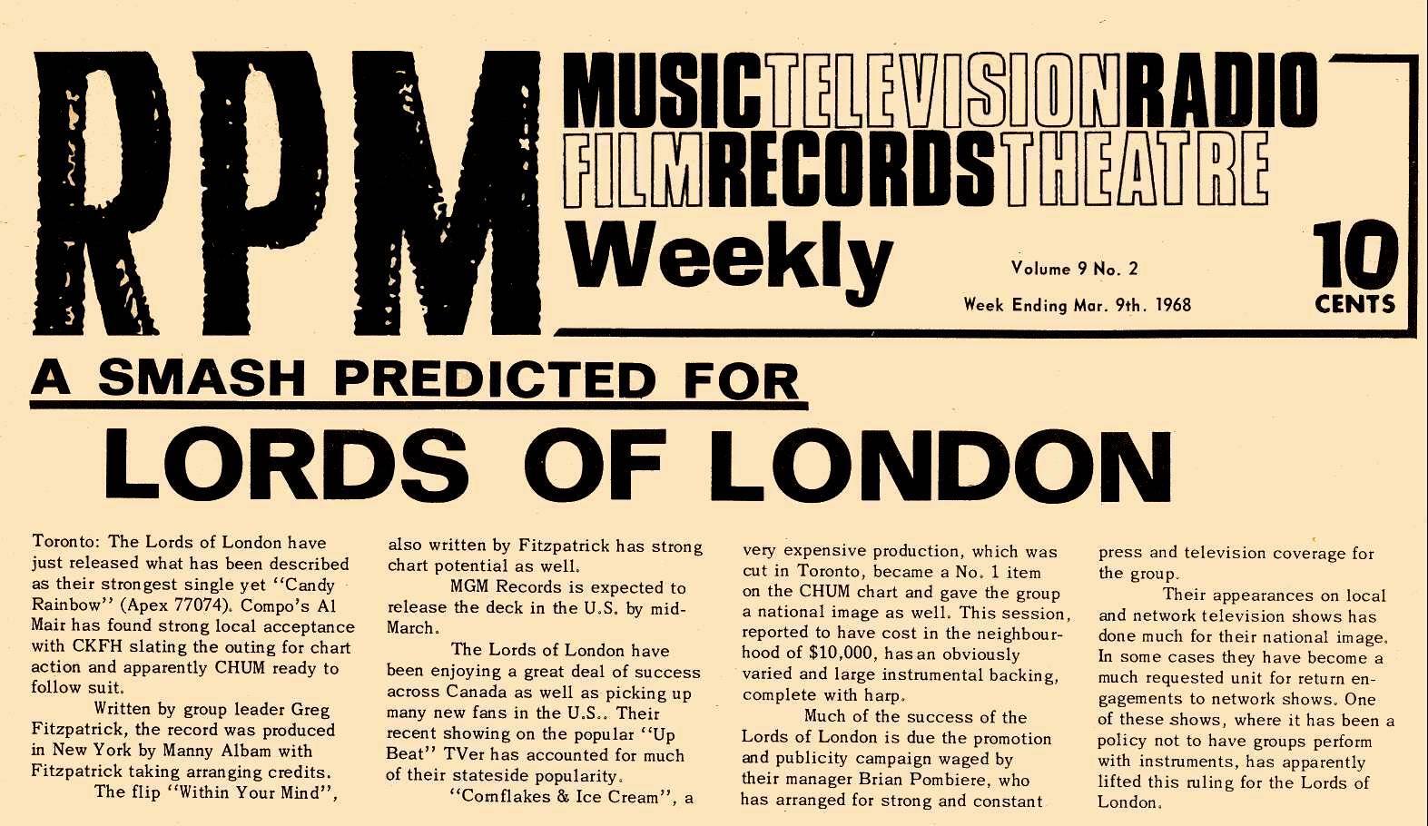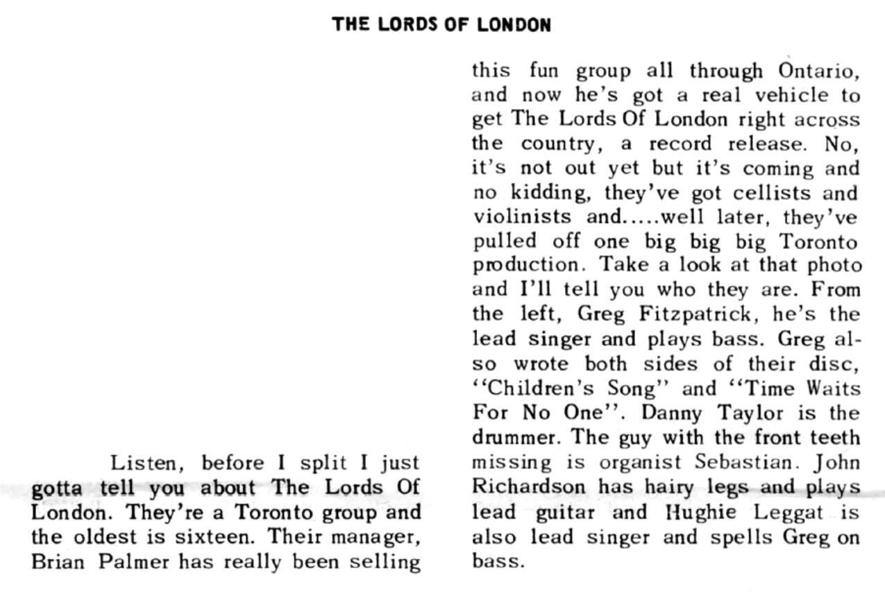 Bill Townsend & Brian Pombiere, managers .. 1970 Lords of London/Nucleus