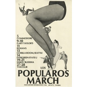 In late 1980 Armstrong and Scherk were reunited in Los Radicos Popularos, a so-called fuck band that also included Art Bergmann, Tony Bardach, Zippy Pinhead and sometimes Gord Nicholl. By February 1981, with the demise of the Young Canadians and Modernettes, the band shortened their name to Los Popularos and became a full-time project. Los Popularos released two records: the 7-inch single Working Girls b/w Mystery To Myself (1981) and the Born Free 12-inch EP (1982). Los Pops toured North America a couple of times, but eventually called it quits in winter 1983. The following spring, Art Bergmann formed Poisoned, and went on to a long and storied career as a solo artist.