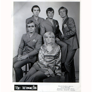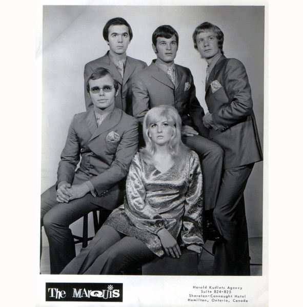 The Marquis official 1965 promo shot for The Billy O'Connor Agency. Top row L to R Ralph Lorenz, Lynda Michaels, and Dave Hall. Front row L to R: Steve Burnside and frat brother Mike Addario