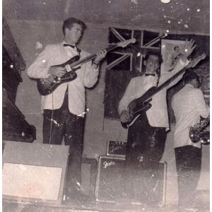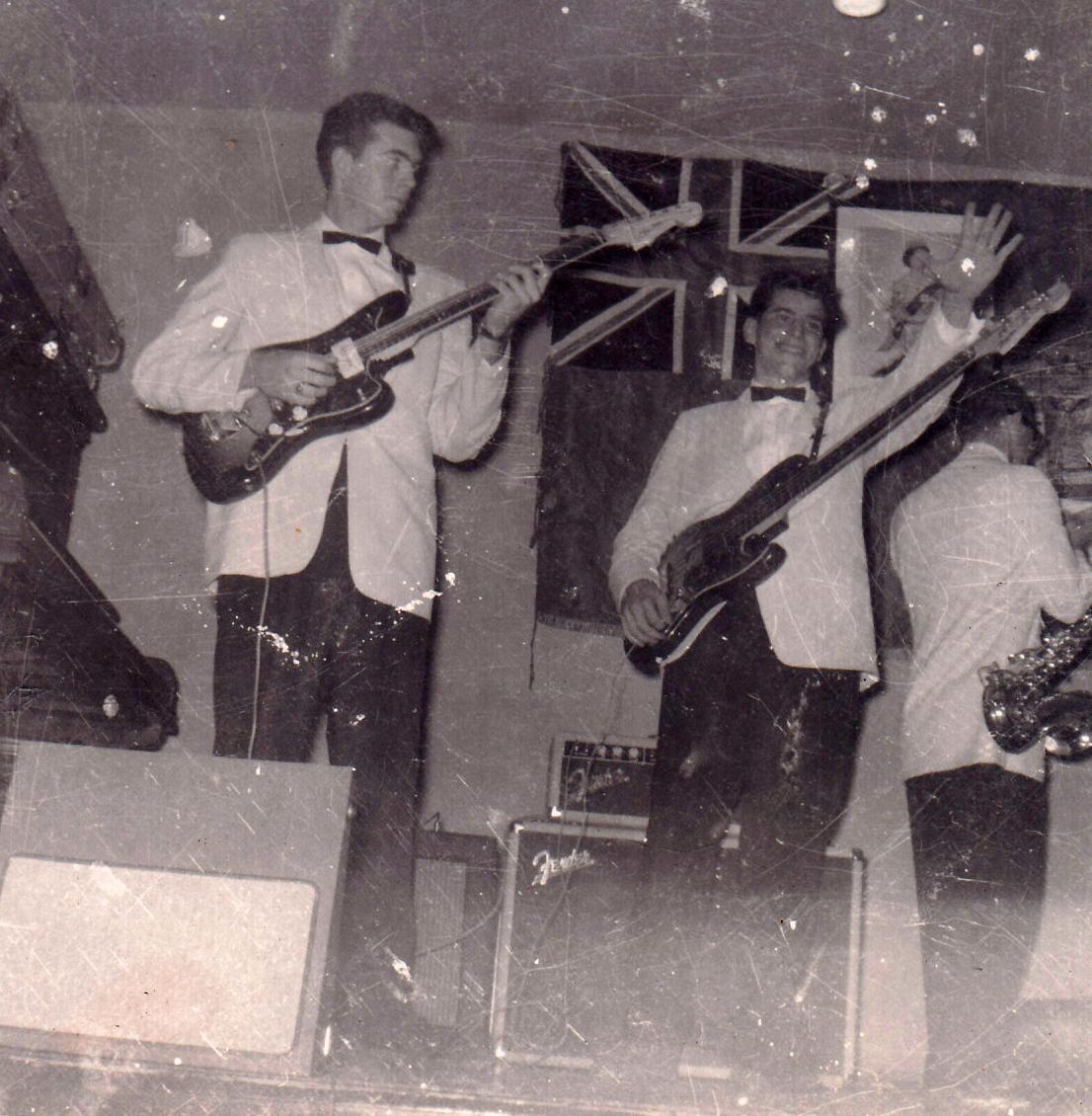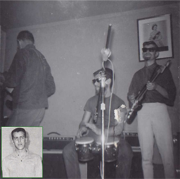 The MARQUIS playing a Frat dance at the Casa Dante circa 1962. Left to right: Steve Burnside, Frat Brother Mike Addario, and Dave Hall.