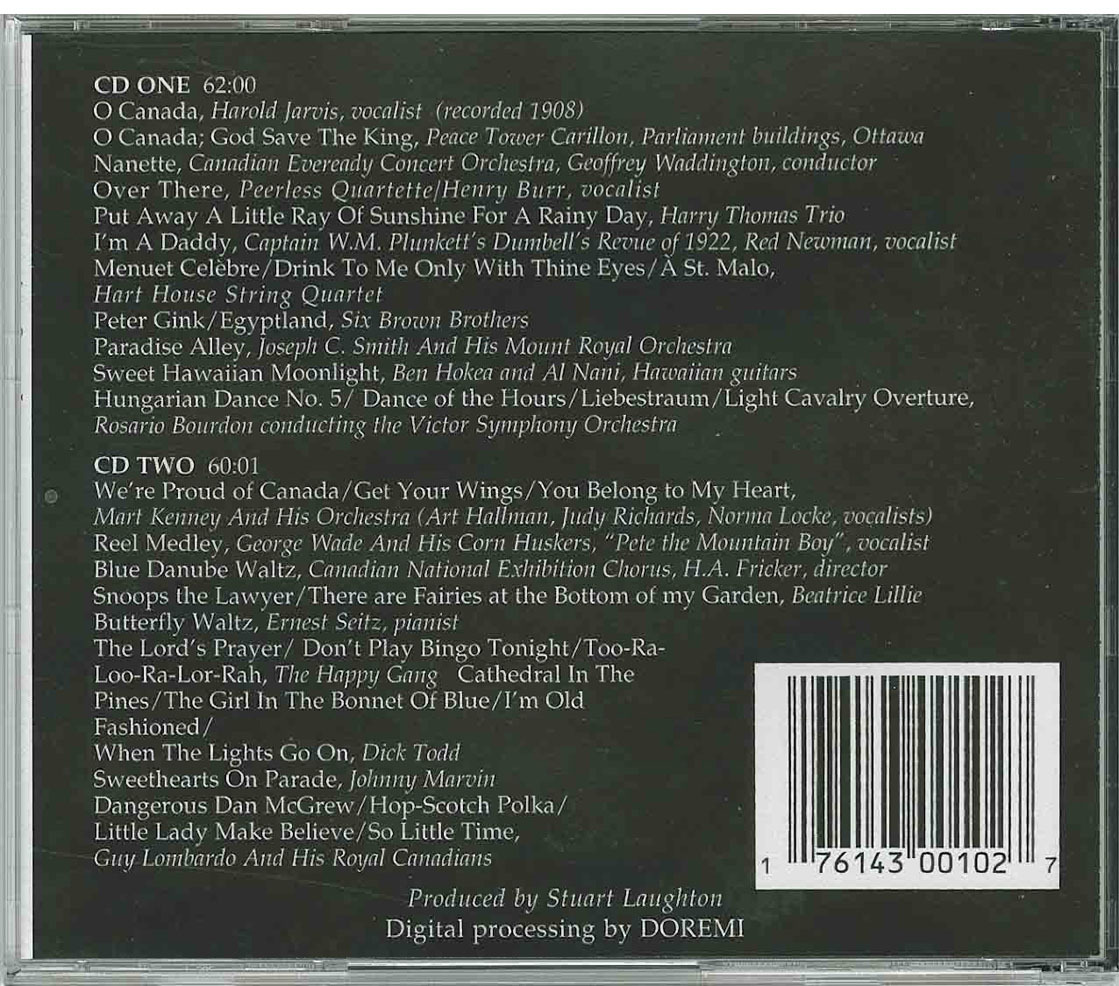 | Compilation | Harold Jarvis, tenor - O Canada (Victor 5517) (1908) | We're From Canada Volume 1 | 02:59 |