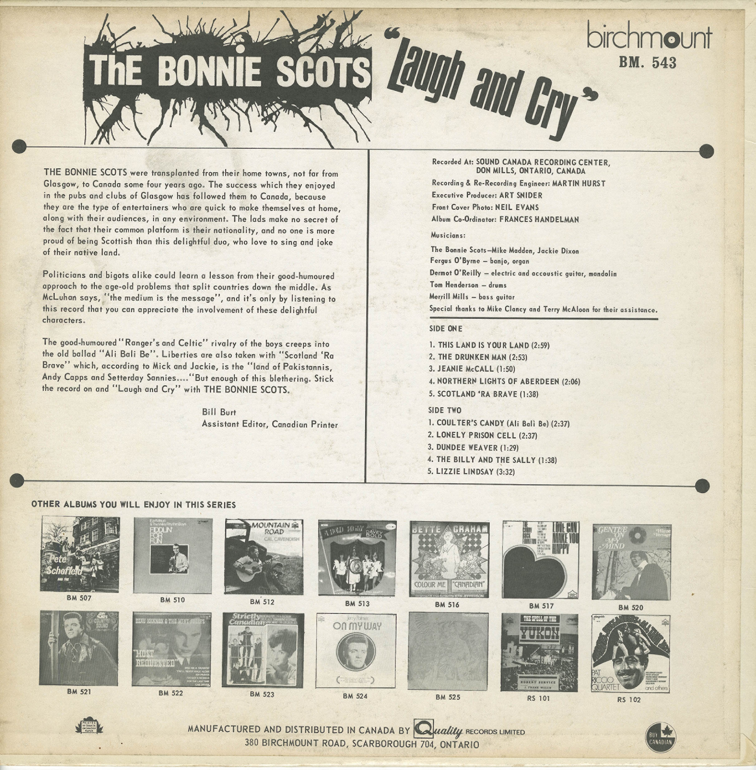 | Bonnie Scots | Jeanie McCall | Laugh and Cry | 01:49 | |