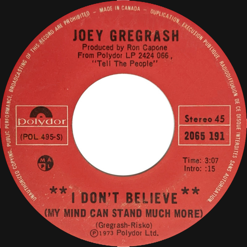 After his time with The Mongrels and Walrus, Joey Gregorash took the leap into a solo career when he signed with Polydor Records in late 1969. His first recording session took place at Sound 80 Studios in Minneapolis, where he worked with producer Bob Burns. The result was two singles: “Stay” and “Tomorrow, Tomorrow”, which did not appear on any album but helped generate enough interest for Polydor to offer Joey the opportunity to record a full LP.