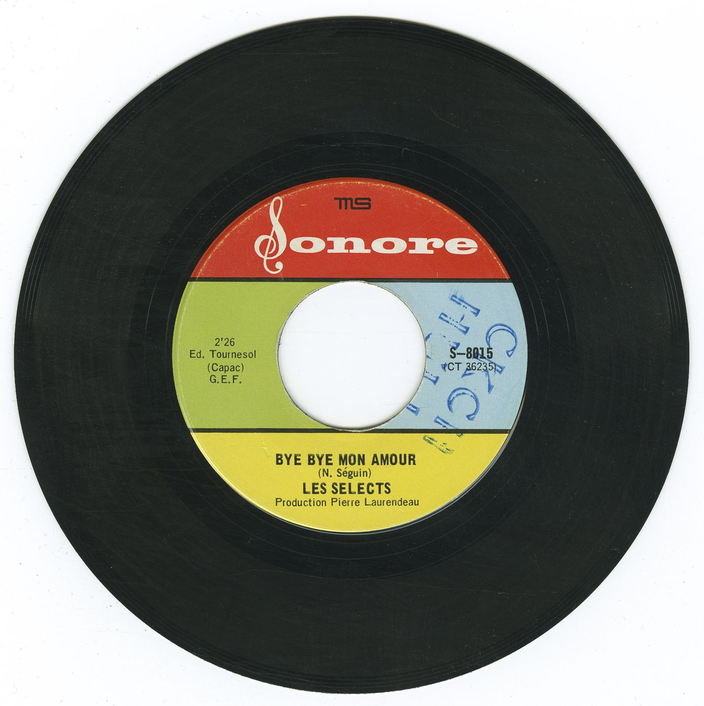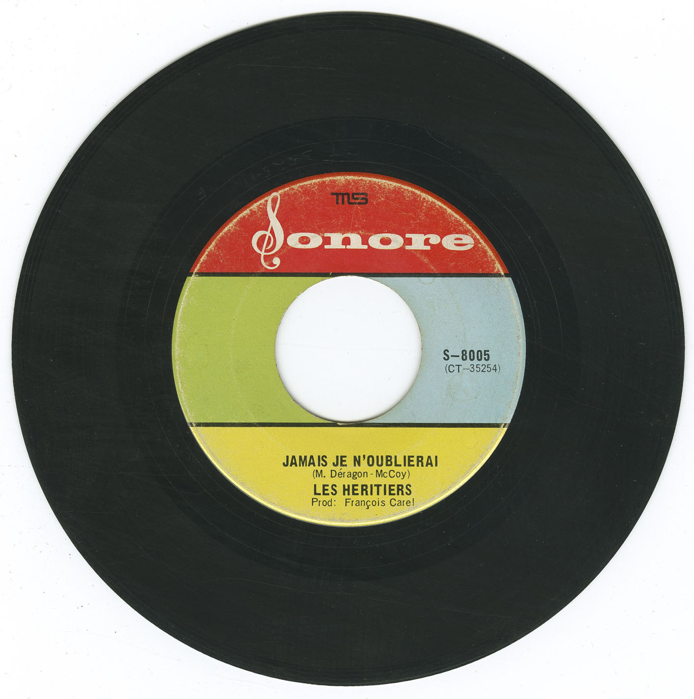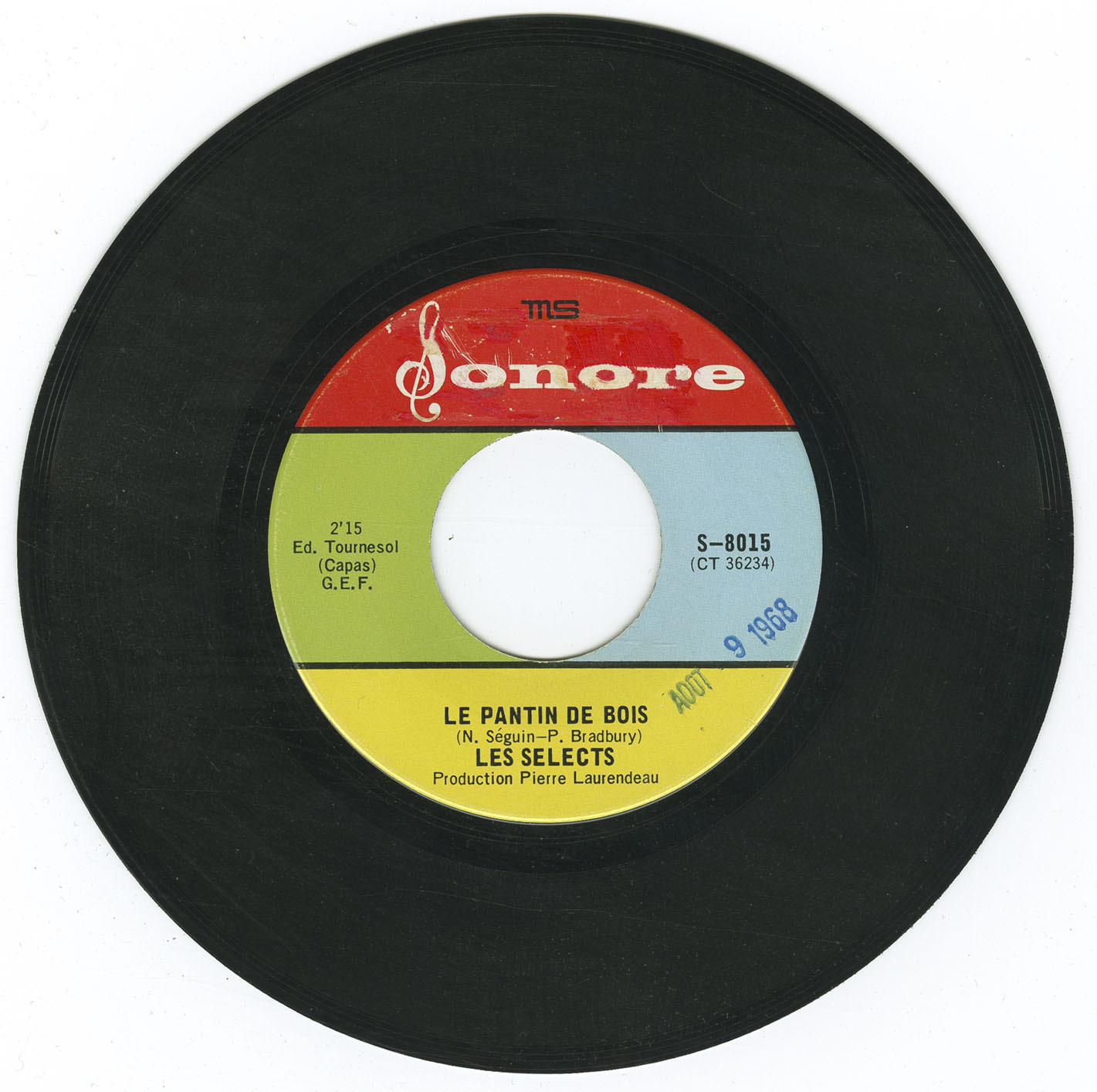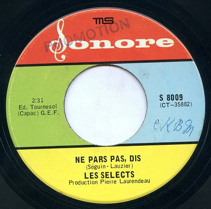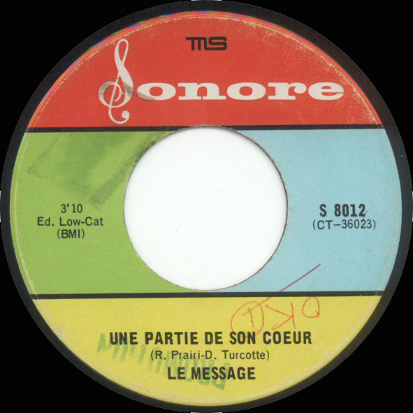 Sonore was a small French-Canadian label based in Montréal that had a brief run from 1967 to 1968, issuing a catalogue that ran sequentially from S-8001 through S-8016 (with no documented release at S-8013). In less than two years, with fewer than 35 songs and a combined runtime of just over an hour, it managed to capture much of the variety in Québec’s youth scene: fuzz-pop from Les Sélects, yé-yé from Les Pieds Fous, straightforward rock and pop from Les Héritiers and Les Rythmos, the lighter touch of Les Gamines, and even a dose of psychedelia from Le Message.
