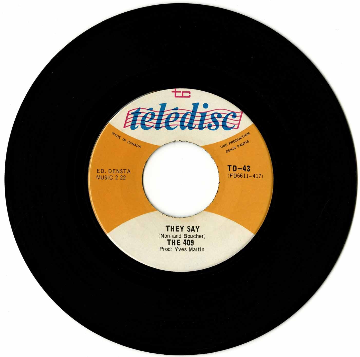 Formed in Pont-Viau, Quebec, in 1963 by Normand Boucher, Les 409 took their name from the Beach Boys’ song "409," penned by Brian Wilson, Gary Usher, and Mike Love. The song was the B-side to "Surfin’ Safari" and captured the youthful energy of the early '60s. With the Denis Pantis-produced single "They Say" b/w "Born in Chicago," Les 409 cemented their place as one of the best garage rock acts of their time—arguably the best in Quebec. "They Say" is a pure long-haired garage anthem, while their punked-out rendition of "Born in Chicago" stands tall even against The Paul Butterfield Blues Band’s version.