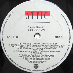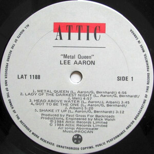 Metal Queen is the second studio album by Canadian rock singer Lee Aaron, released on February 24, 1984. The title track, punctuated by a triumphant chorus and Aaron's Janis Joplin-like delivery, is a declaration of female empowerment. The project's second single, "Shake It Up," combines the slick pop production of the 1980's with roaring guitars and Aaron's powerful vocals, aligning her sound with that of Bon Jovi, Scorpions, Whitesnake, and other anthemic hair metal acts.