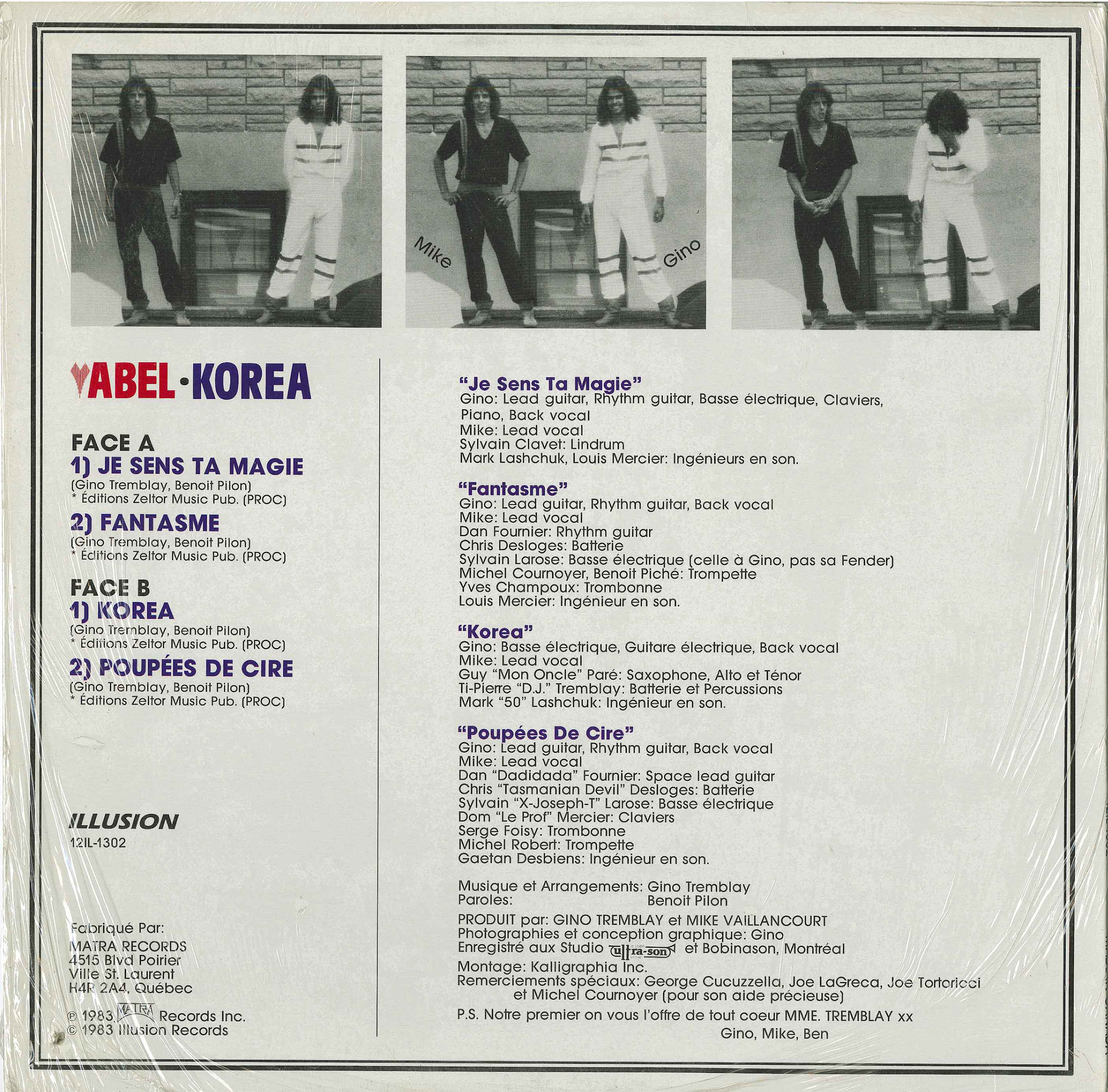 Gino Tremblay: lead guitar, rhythm guitar, vocals, bass, piano
