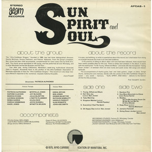 Year after year, during Folklorama, Manitoba’s week-long multicultural showcase (held in August), thousands flock to the pavilion of the Afro-Caribbean Association of Manitoba especially to hear the “Afro-Caribbean Singers.” This record is in very large measure offered in response to the numerous requests made by the public.