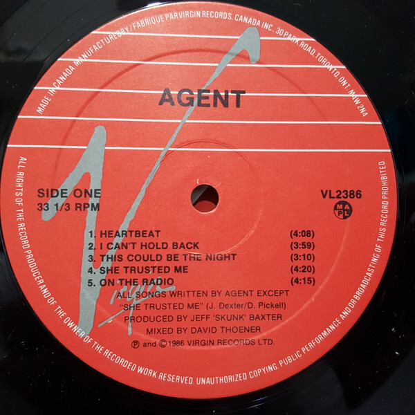Agent weren't so much as a band initially, more a collaboration between Andre Kunkel and Craig Zurba. Both prolific songwriters, their efforts resulted in the pair winning a Canadian music contest which caught them the attention of Virgin Canada. In fact, Agent had the distinct honour of being the labels first signing, a feat which would later come back to haunt them. Prior to that, Zurba, Kunkel and Smart were involved in the 1982 album 'Letting Go' by Canadian chanteuse Nancy Nash. Bringing their music together under a proper band structure, Agent was born, though many members passed through its ranks during the mid eighties. By the time their 1986 debut was released, the lineup had stabilised to that listed above. Musically, Agent bring to mind many of its Canadian contemporaries, such as Glass Tiger, Loverboy, Streetheart and Honeymoon Suite. But the real big comparison to these ears is the one-off AOR classic Preview.