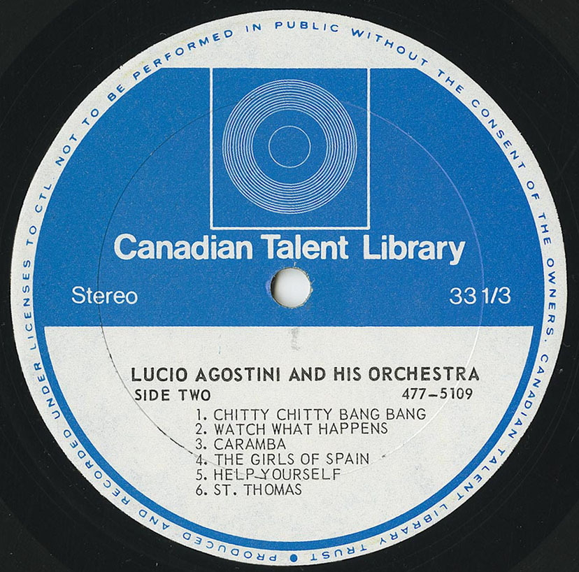 Latin American music has long been a specialty of Lucio Agostini, and the Canadian Talent Library is pleased to present this new album which has not only been especially arranged and conducted by Mr. Agostini, but features three of his own compositions, recorded for the first time . . . “Leah’s Latin Lover”, “Caramba” and “Black Rose”.