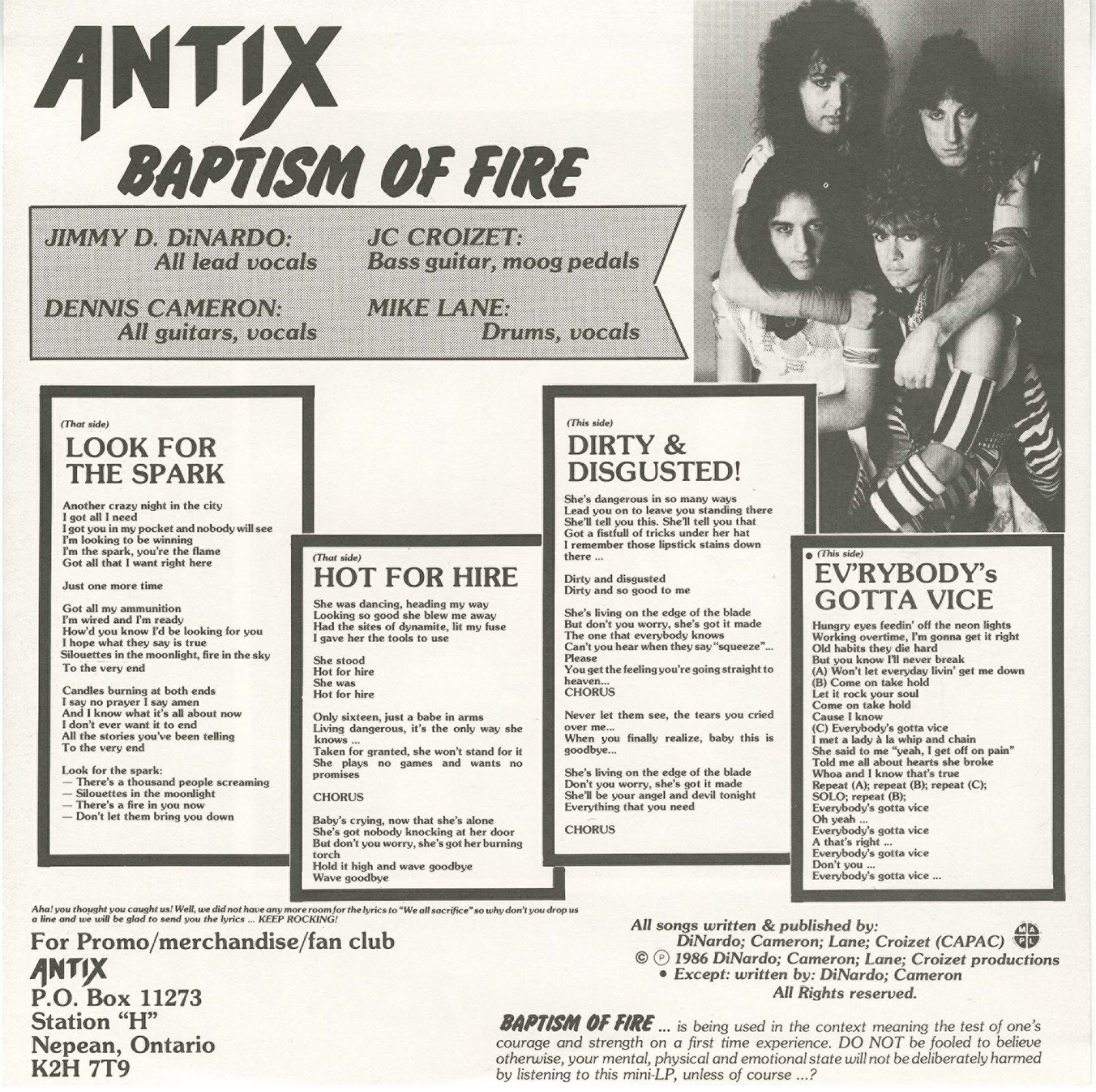 Recorded at Ambience Recorders, Ottawa, Ontario