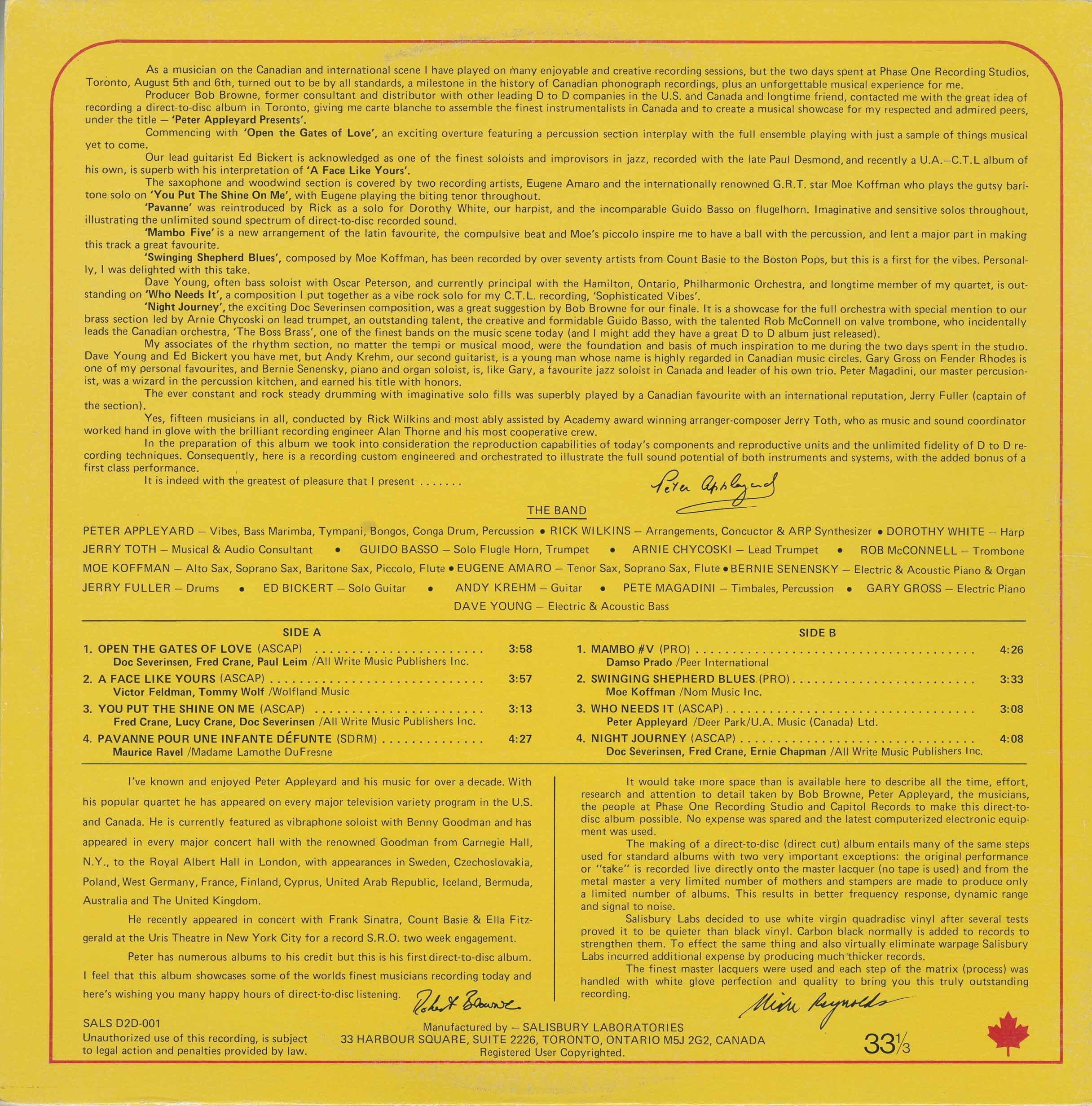 Peter Appleyard: vibes, bass marimba, typani, bongos, conga drum, percussion