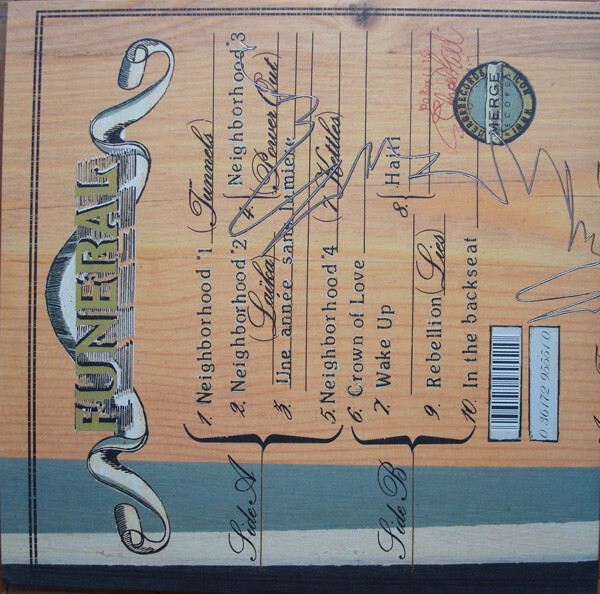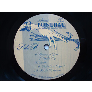 Even in its darkest moments, Funeral exudes an empowering positivity. Slow-burning ballad "Crown of Love" is an expression of lovesick guilt that perpetually crescendos until the track unexpectedly explodes into a dance section, still soaked in the melodrama of weeping strings; the song's psychological despair gives way to a purely physical catharsis. The anthemic momentum of "Rebellion (Lies)" counterbalances Butler's plaintive appeal for survival at death's door, and there is liberation in his admittance of life's inevitable transience. "In the Backseat" explores a common phenomenon-- a love of backseat window-gazing, inextricably linked to an intense fear of driving-- that ultimately suggests a conclusive optimism through ongoing self-examination. "I've been learning to drive my whole life," Chassagne sings, as the album's acoustic majesty finally recedes and relinquishes.