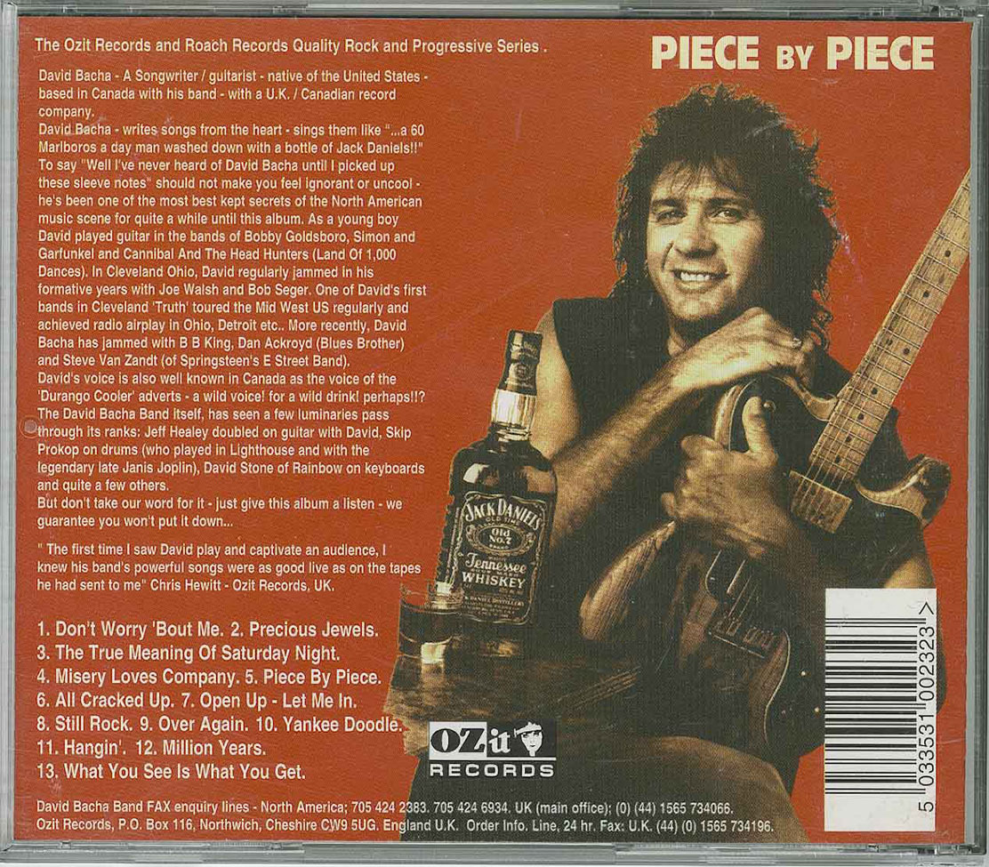Often known as 'Mr. Jack Daniels' due to the numerous lyrical references in his songs to this popular hooch, Bacha has received many complimentary reviews both in the Canadian press: "A prophet without honour in two countries, a Cleveland-born Toronto rocker, his writing is infused with a poet's ear for imagery and a novelist's ability to spin a tale" (Toronto Rock magazine). "Bacha's lyrics have a substantial amount of honesty in them - I like the slower songs better as there's more time to absorb some of his insights, some of which you may find helpful if you are all confused about life right now" (Tonite Magazine), and in more unlikely publications, "The music is blueprint American rock'n'roll, though with an attractive lack of finesse and a commendable disdain for MTV values." (Feedback - the rock magazine for members of Mensa).