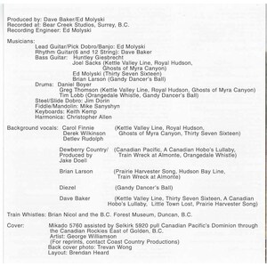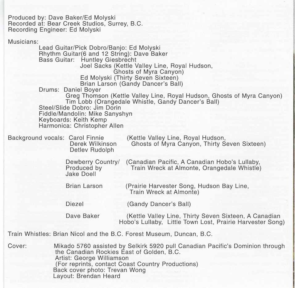 This album in music industry terminology is a concept album featuring some of the best known and loved Canadian railway songs from the pens of several great Canadian songwriters. It has been created for the 'railway buff', the enthusiast who is emotionally moved by the haunting wail of a steam locomotive whistle.