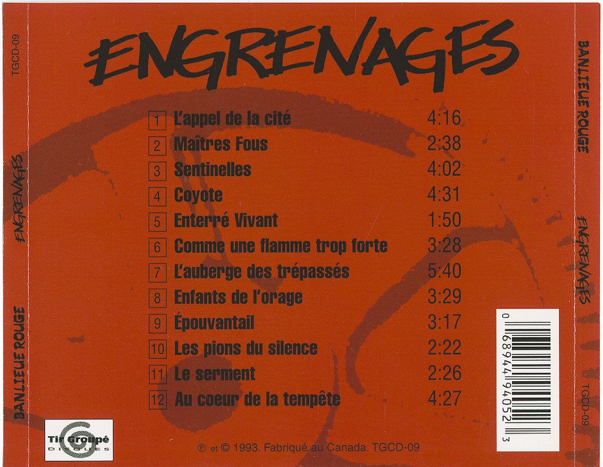 La parution d’Engrenages en mai 1993 traduit plus que jamais la nécessaire et volontaire évolution du groupe. Cette recherche artistique relègue aux oubliettes le minimalisme de la boîte à rythmes au bénéfice de mélodies qui s’affirment et s’enrichissent. Si certaines chansons affichent des convictions bien ancrées et parfois s’aventurent vers les légendes urbaines, la plupart exaltent l’amitié et l’unité de la jeunesse. Du côté de l’hexagone, plusieurs y verront l’influence des années Chaos en France. Pour réaliser cette transition, Banlieue Rouge fait appel à André Lambert qui, plus connu pour son activité dans la chanson québécoise, accepte de s’encanailler le temps d’un enregistrement. Pour célébrer cette nouvelle cuvée, la formation s’offre un Spectrum à guichets fermés avec Ludwig Von 88, ainsi qu’une section de cuivres pour des versions « rocksteady » de Maîtres fous et Épouvantail. L’institution de la rue Sainte-Catherine deviendra un rendez-vous annuel pour le groupe et son public. Inlassablement soutenu par sa base, Banlieue Rouge accède enfin avec ce troisième album à une certaine reconnaissance médiatique, notamment par la télédiffusion du vidéoclip Sentinelles. Télédiffusion toutefois confinée aux heures tardives du fait de la disqualifiante présence de quelques centilitres d’hémoglobine. Après quelques dates au Québec, le quatuor enchaîne avec une nouvelle tournée sur le vieux continent, cette fois en tête d’affiche. Chaque concert récompense cette audace par des assistances surprenantes, preuve d’une popularité indéniable en Europe francophone. Encouragé par ces derniers faits d’arme, Banlieue Rouge se trouve dans les meilleures dispositions pour se risquer au délicat exercice de l’enregistrement live. Encore sous l’adrénaline de ses deux concerts aux Francofolies de Montréal devant plus de 6.000 personnes en août 1994, la formation n’imagine sûrement pas la douleur de ce nouvel accouchement discographique. La genèse d’Au coeur de la tempête sonne hélas comme un triste réveil.