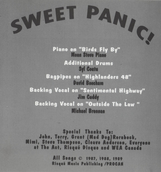 Their debut album Sweet Panic! was released in 1990 on Risqué Disque. Produced, recorded, and mixed by Terry Brown, and mastered by Bob Ludwig at Masterdisk, the album delivered a polished but grounded guitar-driven sound. Guest appearances included Jim Cuddy on backing vocals, along with other contributors. Despite strong musicianship and early support, the album struggled to achieve sustained national radio airplay. Risqué Disque collapsed later in 1990, limiting the album’s commercial reach.