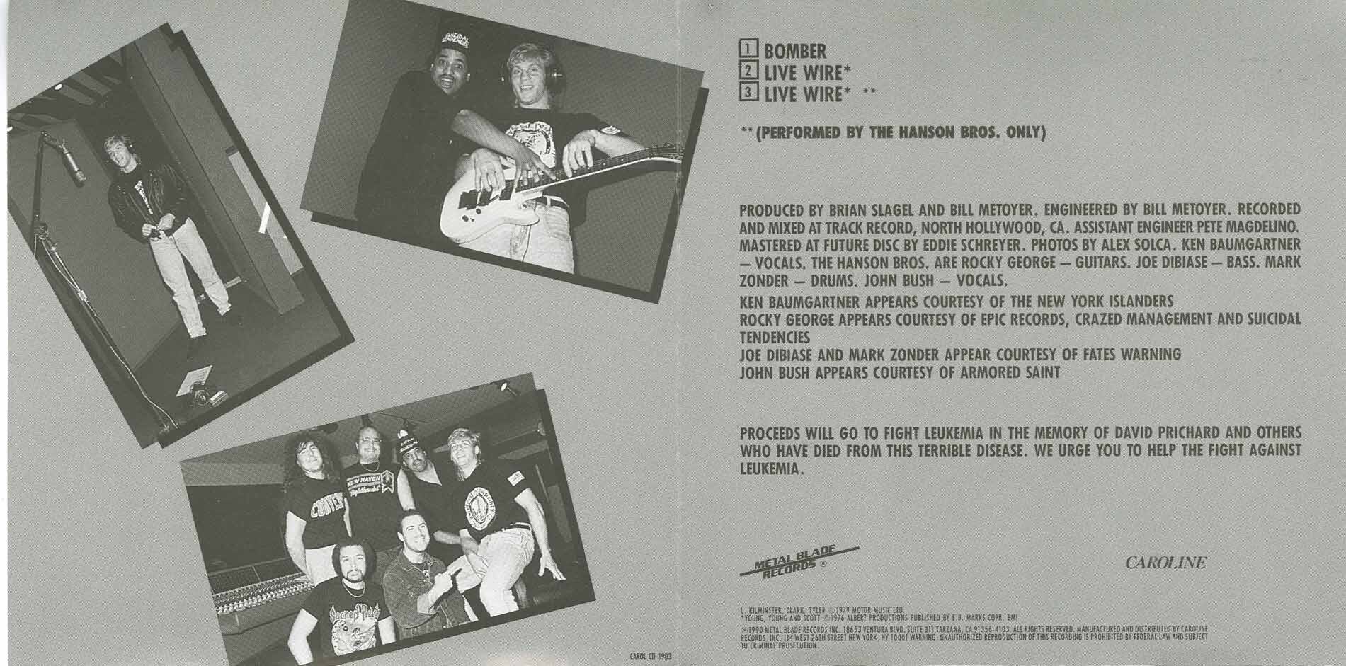 A professional hockey player whose career on ice spanned over two decades of service with numerous NHL, AHL, and WHL teams, Ken Baumgartner was also a fan of hard rock and heavy metal music. His friendship with Metal Blade Records honcho Brian Slagel (himself a hockey fanatic) resulted in one of the more curious releases in both the label's and heavy metal's long history. Between 1987 and 1990, Baumgartner was an off-and-on member of the Los Angeles Kings, and it was toward the end of his stay with the team that he and Slagel came up with the idea of recording a single for charity. This eventually became the Bomber EP, which saw musicians like Armored Saint vocalist John Bush, Suicidal Tendencies guitarist Rocky George, and the Fates Warning rhythm section of Joe DiBiase and Mark Zonder (among others) lending their talents to record a pair of classic metal tunes -- namely the Motörhead nugget chosen as its title and the AC/DC favorite "Live Wire." Baumgartner was shipped off to the New York Islanders shortly thereafter, and enjoyed another ten years of distinguished hockey, but has had no additional recording credits to his name.