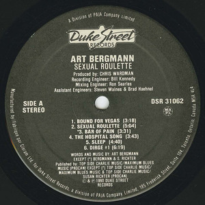 Blood from needles, phonograph and otherwise, drip from each primal and poetic track. No sweet songs for sale, these are Bergmann's tales of darkness culled from our deepest desires and dreams, bruised by life but still raging against the dying of the light. Since the late 1970s, his has been a gloriously gritty rock, the hissing cousin of Westerberg and Iggy, the soul shadow beside Neil and Cohen, a whirlpool of songs threatening to pull you under as they baptize. Not for safety seekers or those Bound For Vegas. For those who cling to rock so as not to sink into the depths. Art is salvation in a godless world.