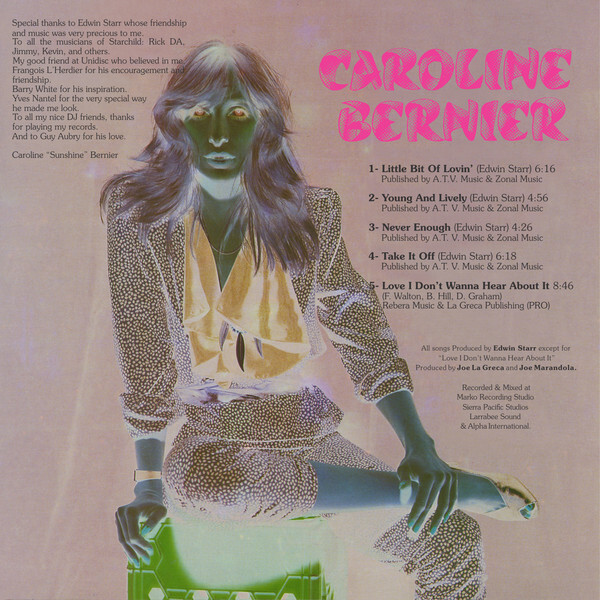 The album was recorded at Studio Marko, orchestrated by Denis LePage (of Lime fame), and featured Caroline not only as lead vocalist but also as co-writer and backing singer on several cuts. Its blend of lush orchestration, dancefloor energy, and soulful performance quietly cemented her status as a hidden gem of the Montréal disco scene. Though overlooked at the time, the album has found new appreciation in recent decades, particularly among European and Japanese disco archivists.