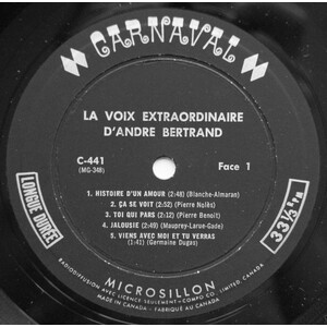 La Voix Extraordinaire D'André Bertrand Face 1