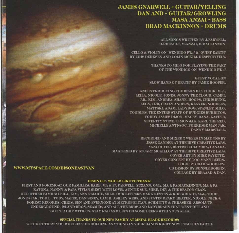 "Quiet Earth" sounds a lot like early Mastodon, but Bison B.C. mix it up with a swaggering, righteous bar band edge. Though they handle their instruments with a prog-rocker's precision, they don't write songs to show it off. As they blast through these sludgy, churning compositions the craft is more than evident, but what's even more up-front is Bison B.C.'s enjoyment.
