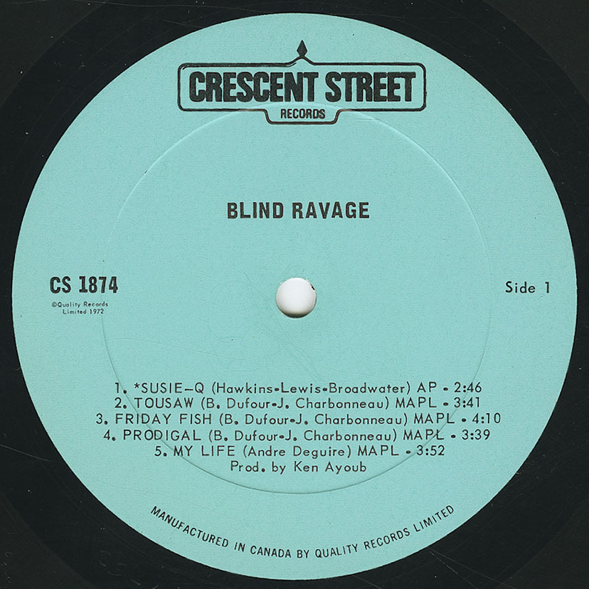 In 1971, the band recorded and released their only album, Blind Ravage, on the Crescent Street label. Produced by Ken Ayoub, the LP featured mostly original material, showcasing the band’s heavy riffs, driving rhythms, and gritty organ work. The Beatles' "Birthday" was the only cover on the album. The single “Loser” backed with “My Life” was also released, but despite the group’s efforts and strong live presence, the album didn’t achieve mainstream commercial success at the time.
