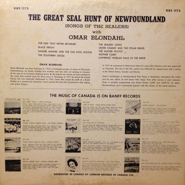 Omar Blondahl, as legend would have it, stumbled upon St. John's on a trip to Iceland, fell in love with the place, found a job on a local radio station, then went onto record 17 folk traditional albums in the 1960's and 70's and became the first full time performer/folklorist to specialize in Newfoundland Folk Music and made an extraordinary and legendary contribution to Newfoundland ballads, songs, and folklore.