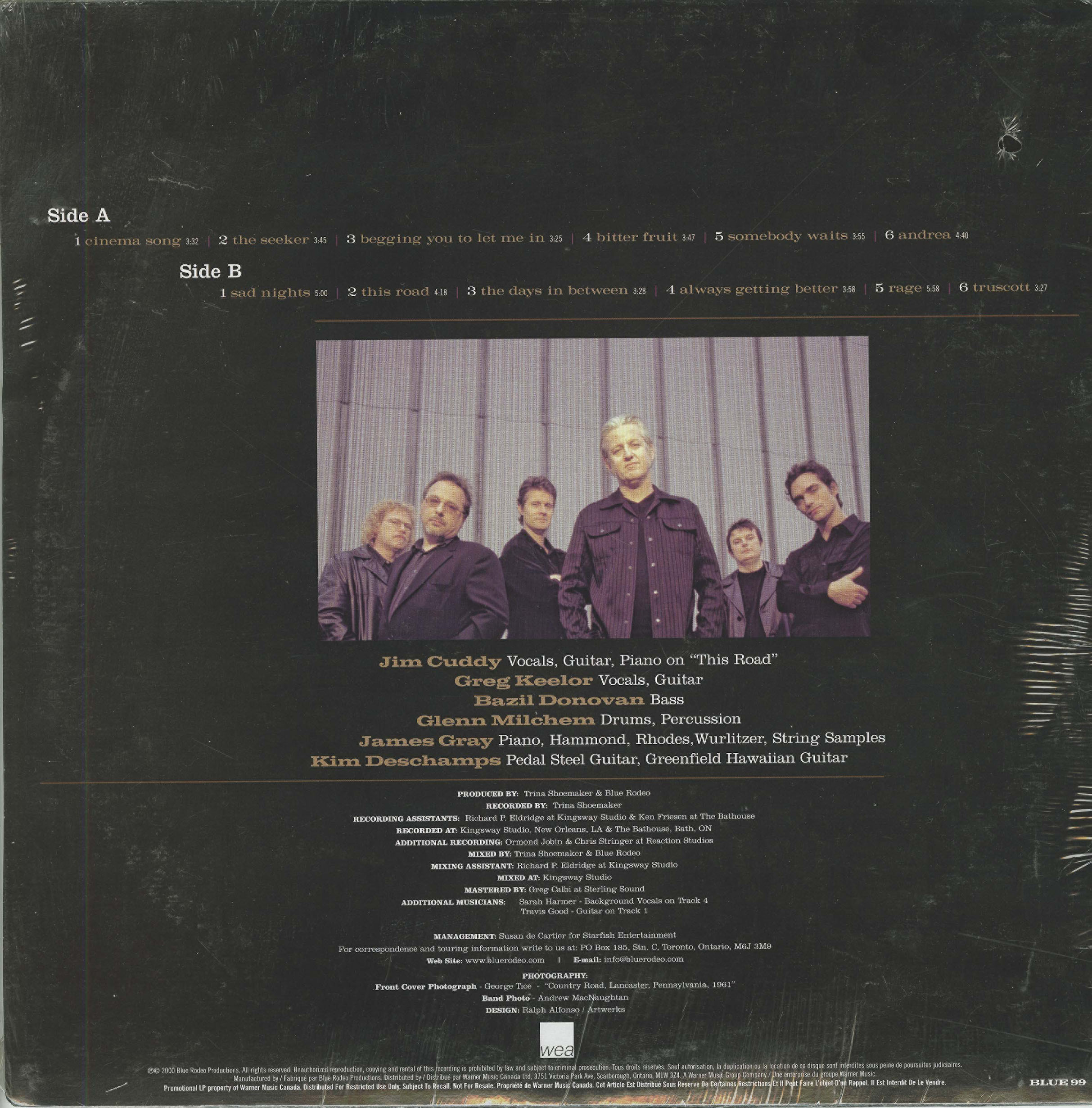 On this, their eighth studio album, Blue Rodeo continues, quite frankly, pretty much as they always have. This is not necessarily a bad thing, as they produce fine country-rock music, but some new sounds would not be bad either. Principal writers Greg Keelor and Jim Cuddy both released solo efforts since the group's previous studio release (Tremolo, 1997), and while neither solo albums were classics, they did attempt new sounds, especially Keelor. However, they returned to their tried and trusted formula for Days in Between. The playing is tight and professional, and their remarkable harmonies and strong melodies are all present. The problem is that any one of these songs could be on any of their albums, and by the end of this CD all of the tracks begin to sound somewhat too familiar -- no surprises. Fans will not be disappointed, and indeed enthusiasts of the country-rock genre will enjoy this release as well. Yet when all is said and done, one cannot help but feel somewhat disappointed, since the band fails to live up to the potential demonstrated on earlier releases.